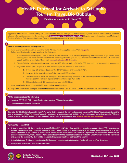 ・このプロトコルは「観光ビザ」で渡航される外国人旅行者に適用され、観光局ルートで入国を希望するスリランカ国籍、二重国籍、有効な居住者ビザ保持者には任意で適用されます。
